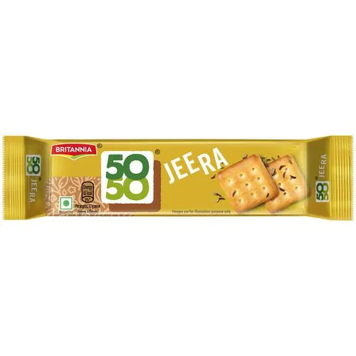 Your favourite 50-50 biscuits got spicier with a hint of jeera in it. Britannia 50-50 Jeera Masti Biscuits are your new excuse for snacking. The same pleasing taste but a little more appetizing with added jeera flavour in it. Light and crispy texture that never can go wrong and keep you wanting for more with a sweet and bitter flavour of jeera that keeps you wondering about its amazing taste