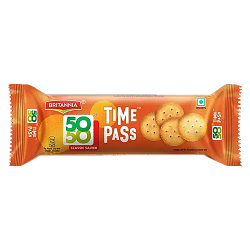 Britannia 50-50 Timepass Salted Biscuits are classic salty biscuits. Golden brown colour, these biscuits are delicious and flavoursome to snack on. Britannia biscuits, cookies, cakes and rusk are a perfect companion for your tea.