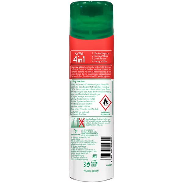 Airwick Air Freshener in Rose & Saffron (245ml) delivers an elegant floral fragrance that transforms your space. This captivating blend of rich rose and exotic saffron effectively neutralizes odors, creating a warm and inviting ambiance. Perfect for living rooms, bedrooms, and more.