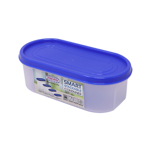 A 600 ml stackable plastic container, perfect for efficient storage in kitchens.
