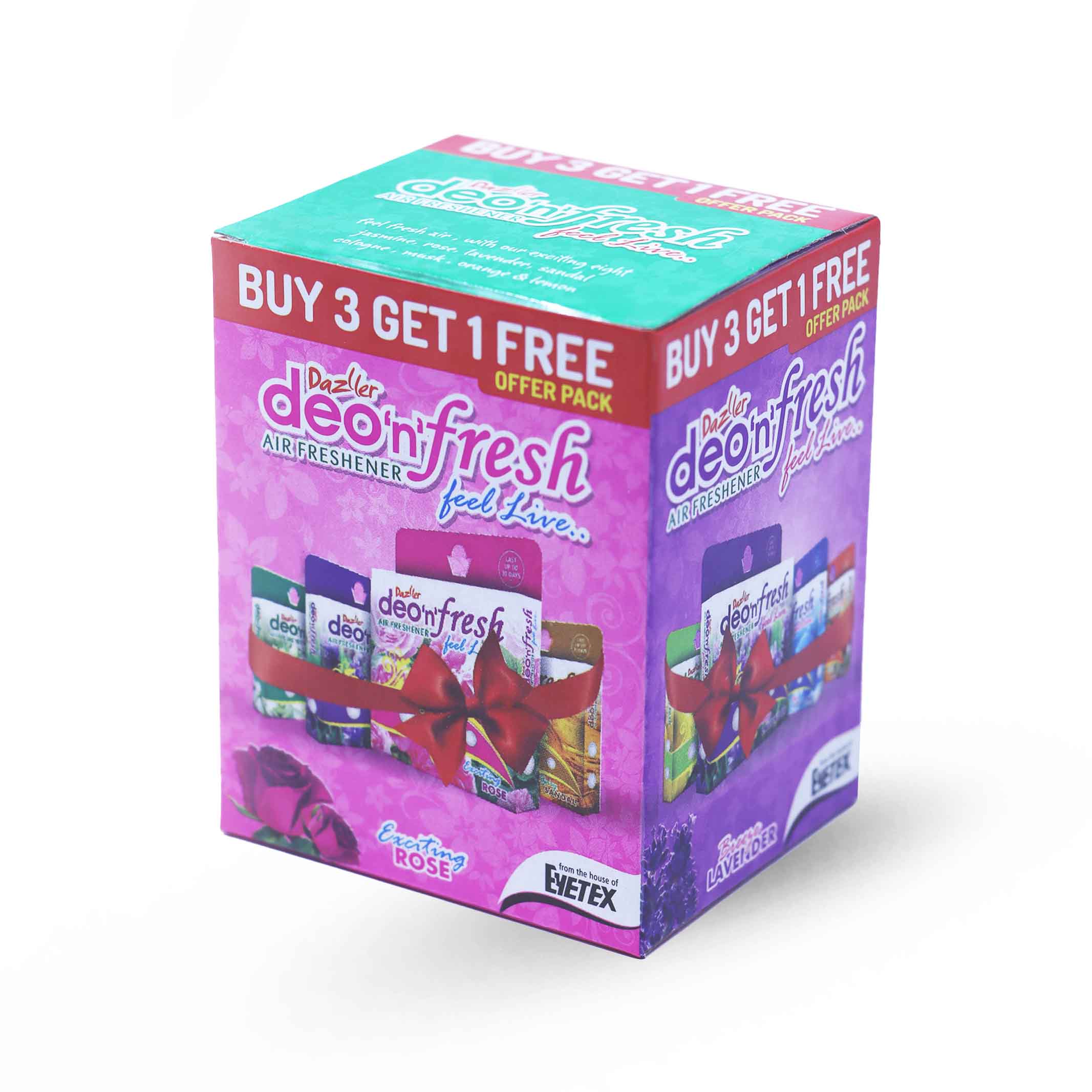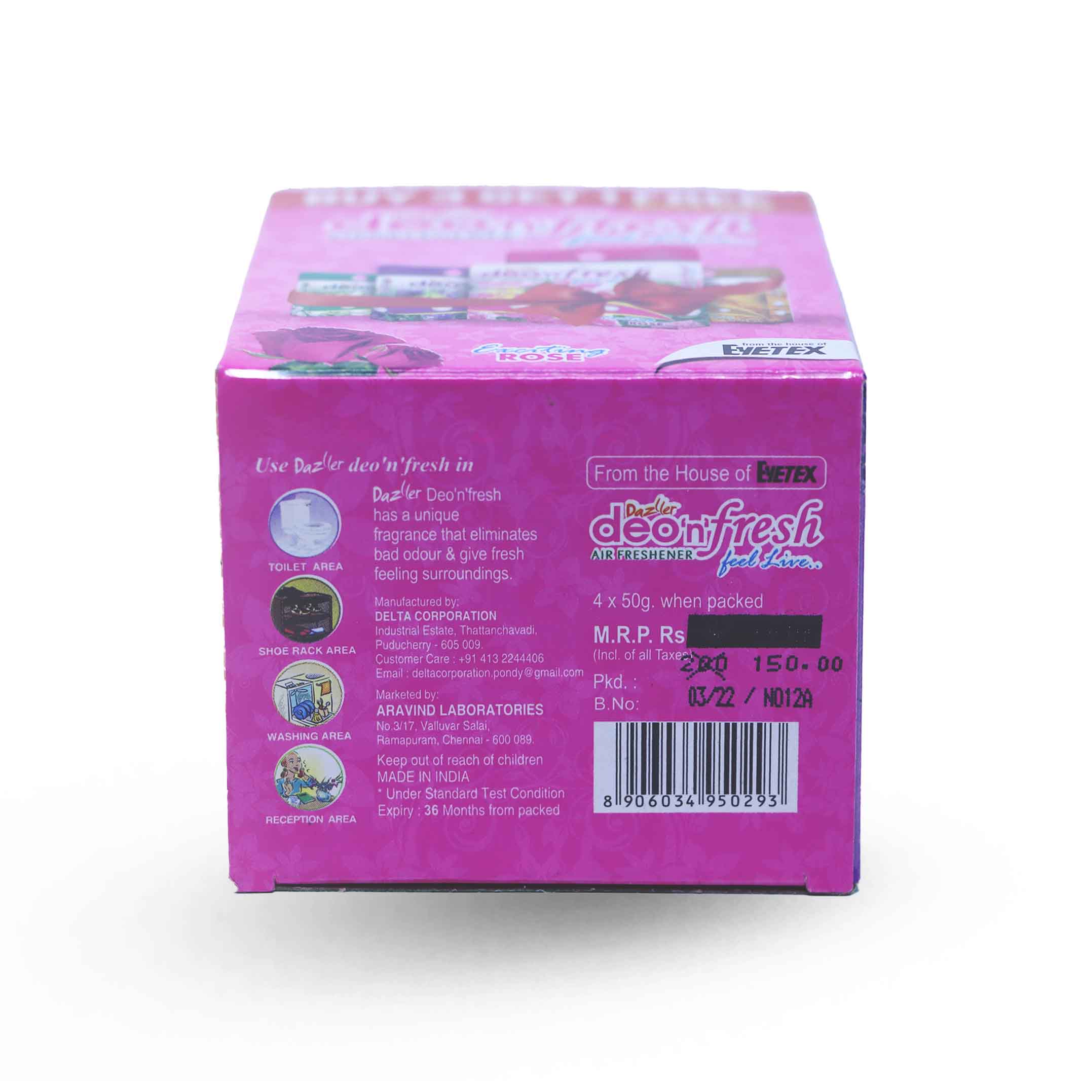 Elevate your environment with Dazller Deonfresh Air Freshener! This set includes four 50 GM packs, each delivering a refreshing fragrance that effectively neutralizes odors. Perfect for any room, it ensures long-lasting freshness and a welcoming atmosphere breathe easy and enjoy the difference.