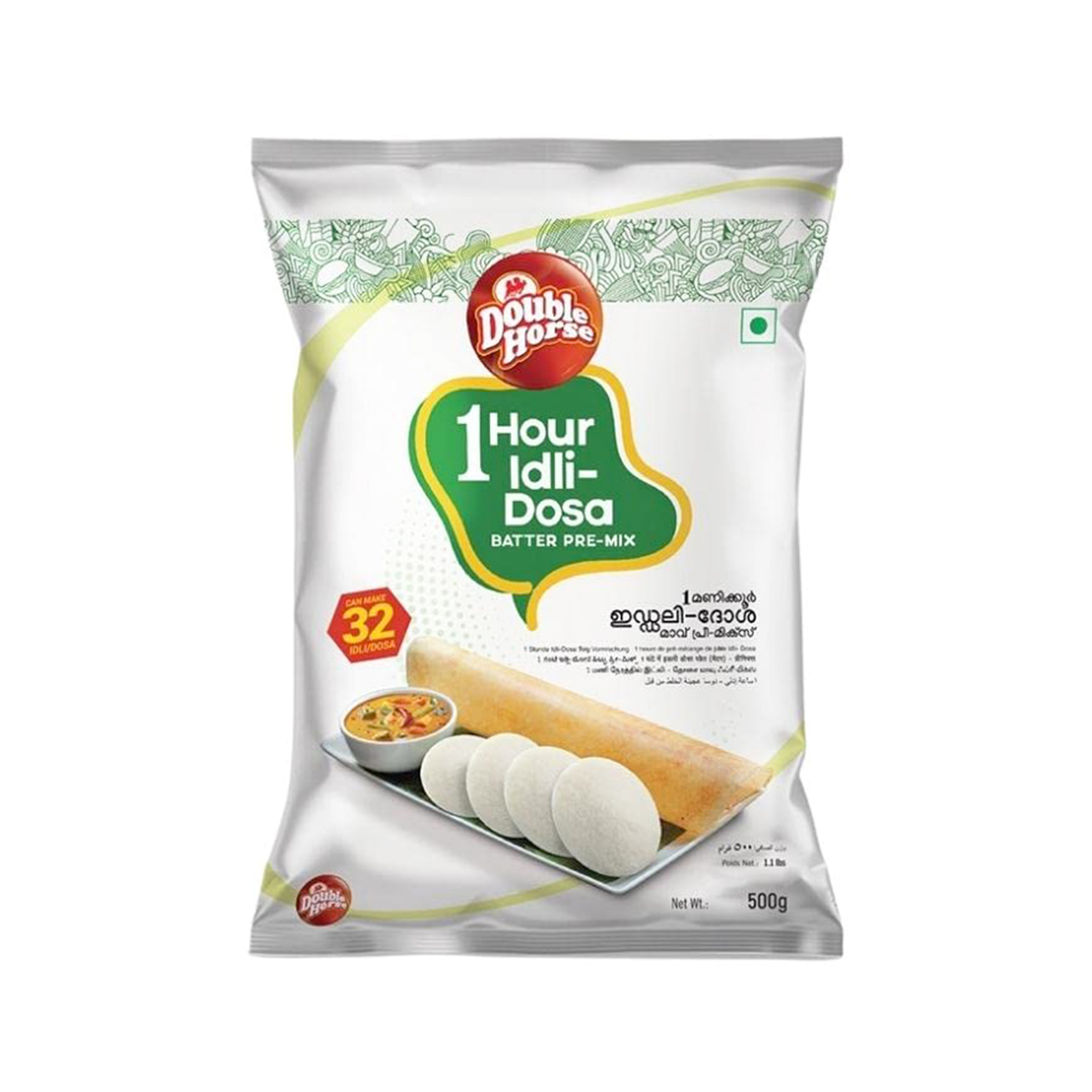 Prepare delicious idlis and dosas in no time with Double Horse 1 Hour Idli Dosa Mix! This convenient mix is crafted from quality ingredients, ensuring fluffy idlis and crispy dosas with minimal effort. Just add water, let it rest, and cook for a quick and satisfying meal any time