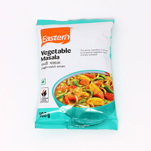Eastern Vegetable Masala is a great blend of excellence spices and condiments to make savory, nourishing vegetable curries. It takes the reliable Indian flavor right to your kitchen. It is 100% vegetarian and has dietary fibre which assists digestion and satisfies hunger.
