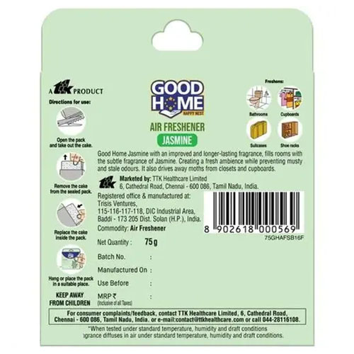 Bring the enchanting scent of jasmine into your home with this 50-gram air freshener. Perfect for medium-sized rooms, it offers a delightful, long-lasting floral fragrance. Just place it in your favorite spot to enjoy a constant, soothing aroma.