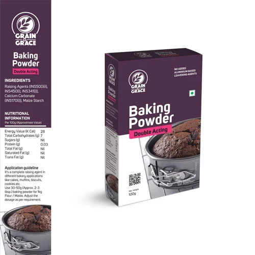 Grain N Grace Baking Powder is perfect for all your baking needs, from flaky biscuits to buttery cookies to tender muffins and moist cakes. Baking powder is a dry chemical leavening agent, a mixture of a carbonate or bicarbonate and a weak acid. It is used for increasing the volume and lightening the texture of baked goods. It has a neutral taste.