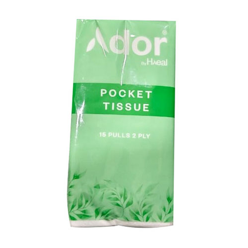 Haeal Ador Pocket Tissue 2 Ply pack includes 15 soft and absorbent tissues, perfect for on-the-go use. Each tissue is made from high-quality material for maximum comfort and durability. Ideal for everyday needs, these pocket-sized tissues fit easily in bags or pockets, ensuring convenience wherever you are.