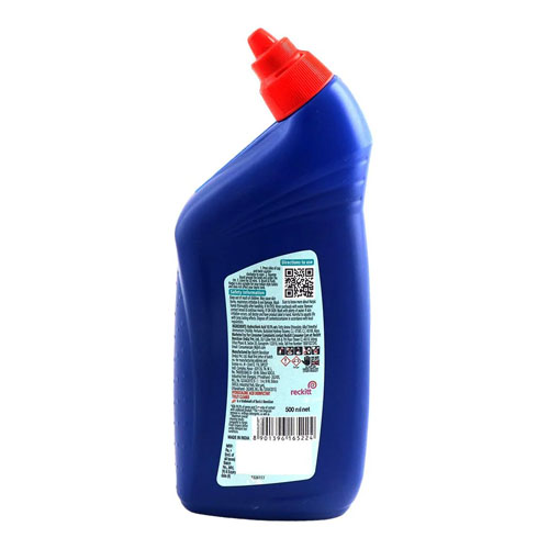Strategically bent bottleneck shape helps pour the liquid into deep corners under the toilet rim