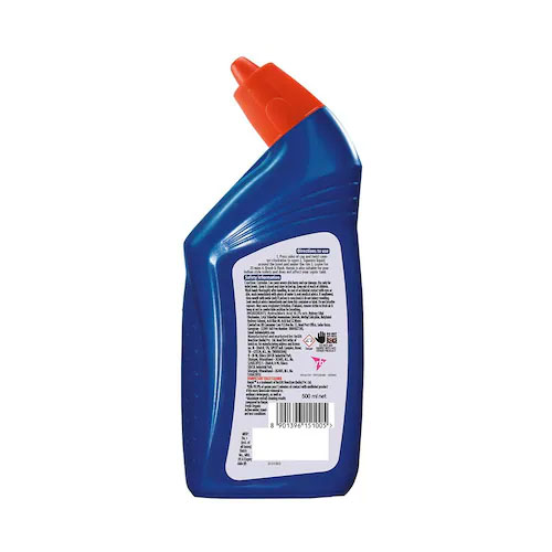 Strategically bent bottleneck shape helps pour the liquid into deep corners under the toilet rim