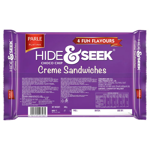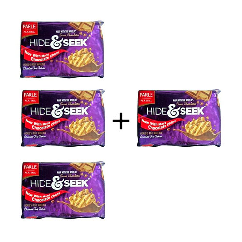 Pamper your taste buds with the rich taste of Parle Hide & Seek Chocolate Chip Cookie. A crisp and hearty cookie loaded with chocolate chips.