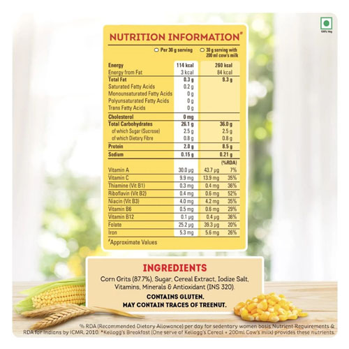 These corn flakes are made from sun ripened corn. The selected grains are cooked, flattened and are gently toasted to develop into your delicious golden crispy cereal.