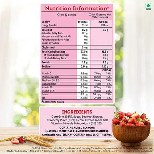 Naturally Cholesterol-free Kelloggs Corn Flakes with Real Strawberry Puree is naturally cholesterol free.