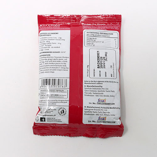 No added colour, no preservatives, no additives Since masala contains salt, add only little quantity to the chicken.