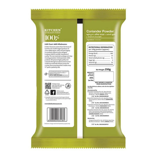 Kitchen Treasures Coriander Powder (500 g) adds a warm, earthy flavor to your dishes, perfect for curries, stews, and spice blends.