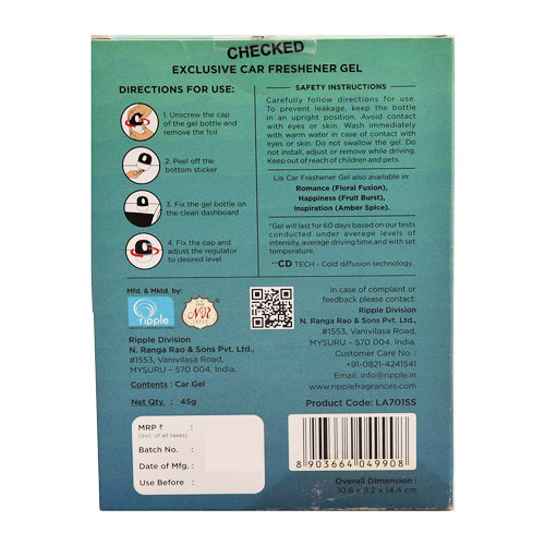 The specially designed In Cap Fragrance Flow Regulator will help to control the fragrance flow within the car as per your preference.