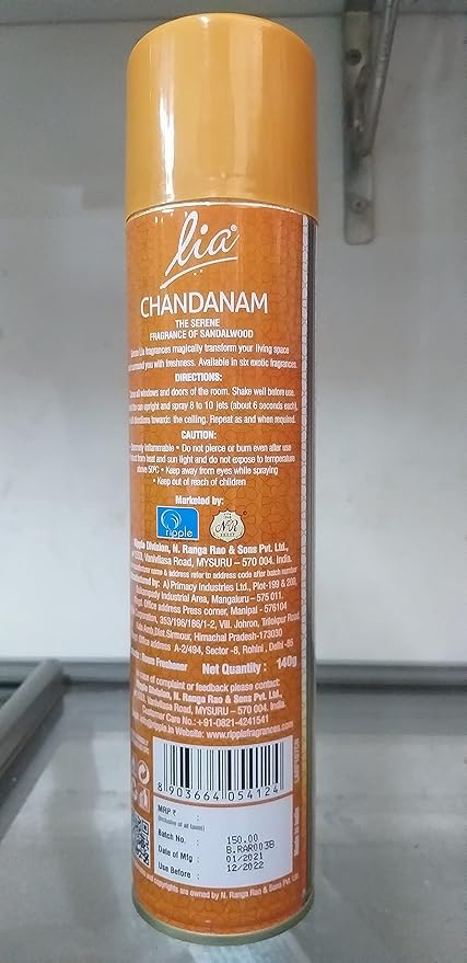 Get this Chandanam, Cylindrical Aerosol Room Freshener Spray by Lia for you. It has pleasant sweet smell