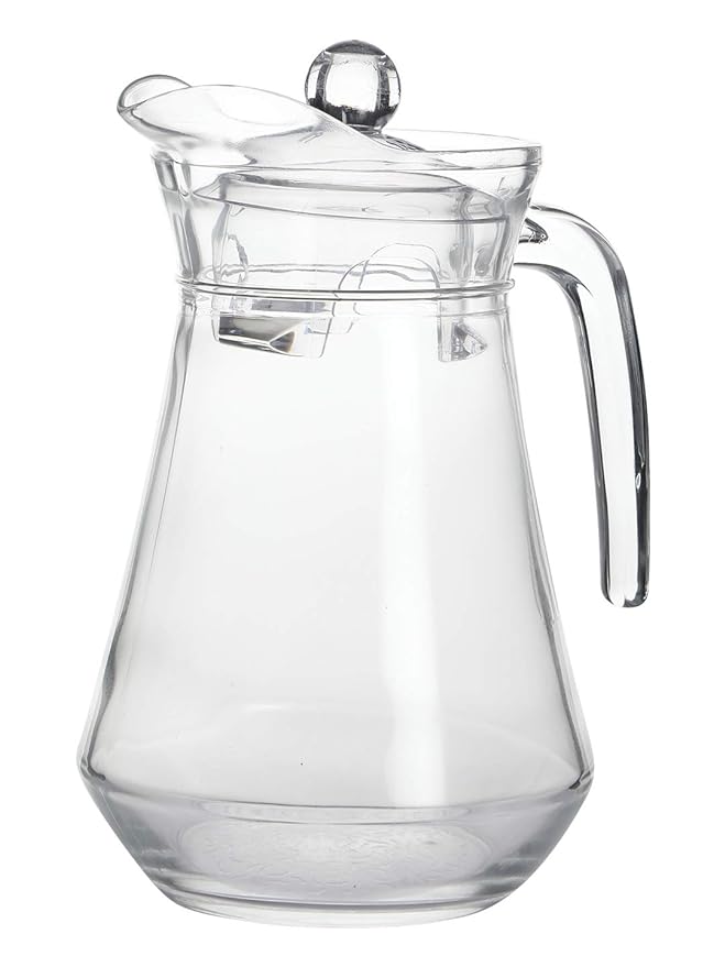 A stylish 1.3-liter glass jug ideal for serving beverages, featuring a sleek design and easy pour spout.