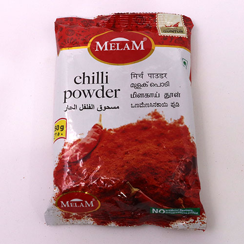 Melam Chilly powder is a mixture of ground, dried fruit of red or cayenne chili peppers and additional spices. It is used to put in heat up or flavor to dishes. It is a broadly applied flavor in different soups.