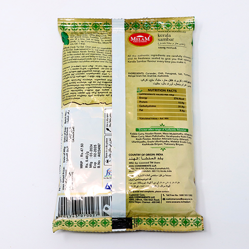 All the Authentic Ingredients are Carefully Chosen and its Freshness Sealed to give you that Special Kerala Sambar Flavour every time you Make it.