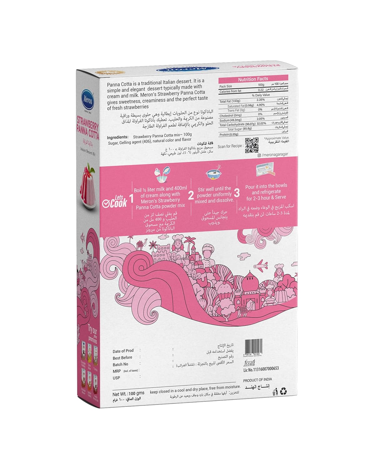 Meron Strawberry Panna Cotta offers a smooth and creamy texture with a refreshing strawberry flavor, making it a delightful treat for any occasion.