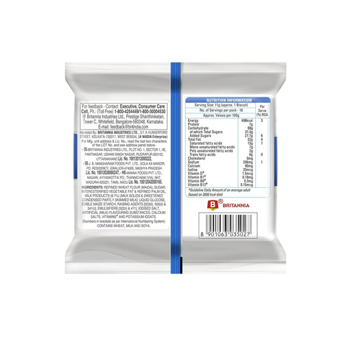 Britannia Milk Bikis Milk Cream Biscuits are crunchy biscuit sandwich filled with a milky cream. The biscuits are prepared with essential nutrients, iron, vital vitmains and iodine making them a healthy snack for your children.