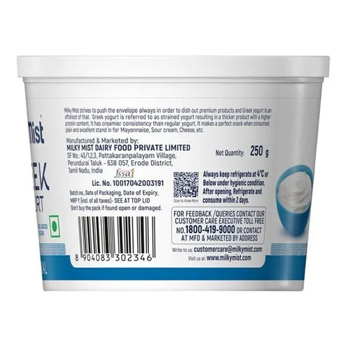 Indulge in the goodness of Milky Mist Greek Yoghurt, a value-added high-protein fermented product crafted using UF technology. With 7% protein content, its completely natural and free from additives or preservatives.