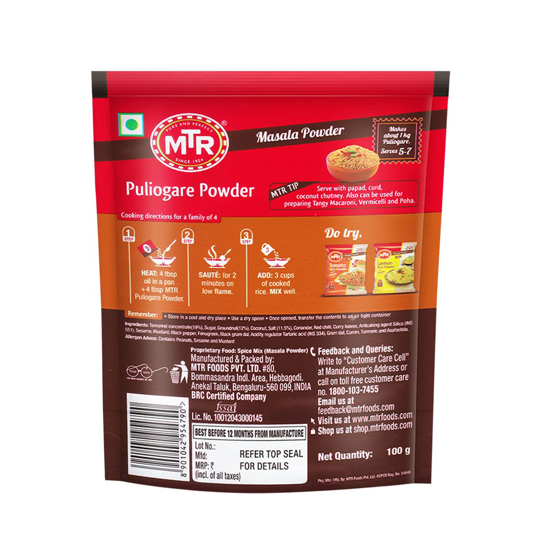 MTR Puliogare Masala Powder 100 Gm
