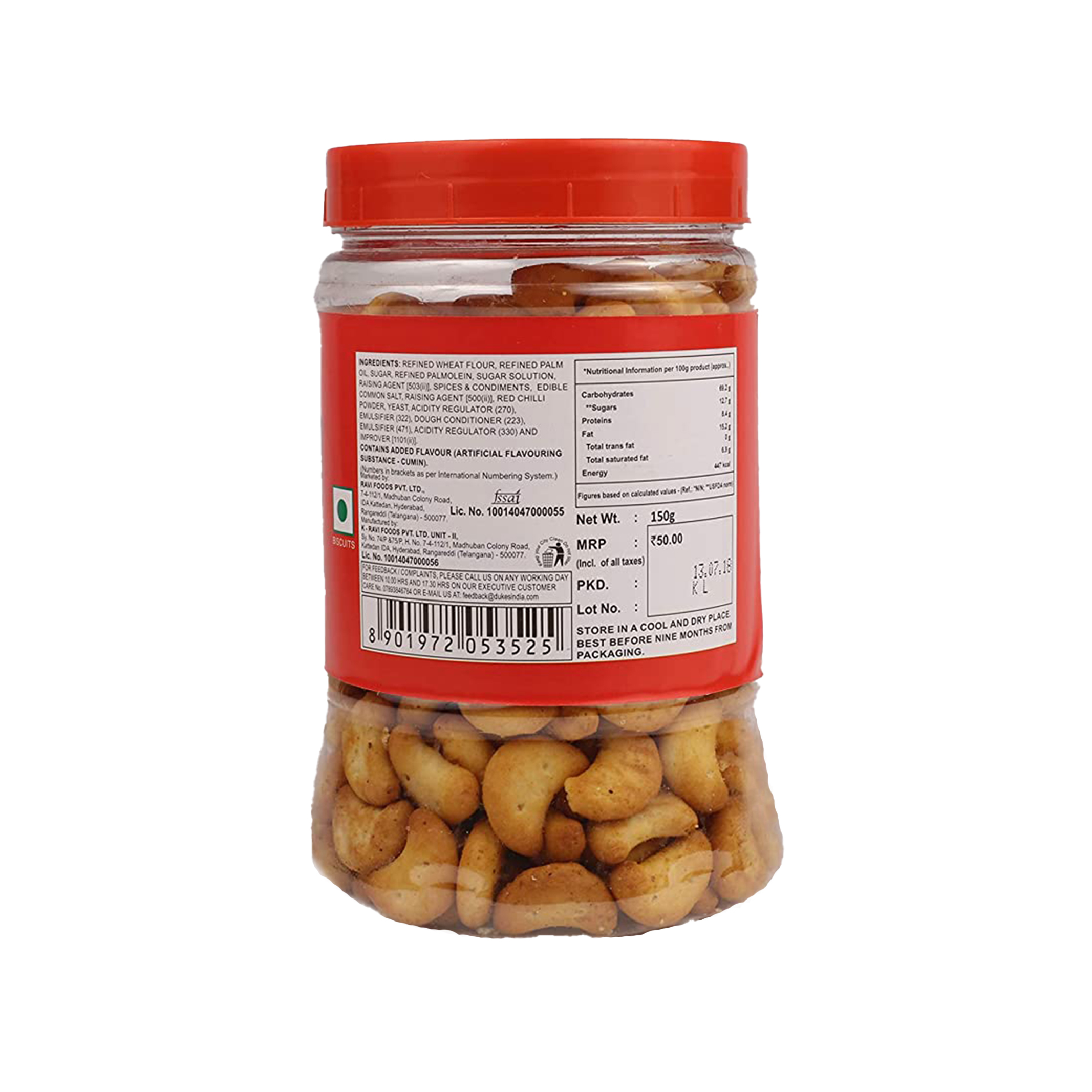 Masala Flavoured Biscuits,No artificial flavours, Contains Permitted natural Colors and added flavours, No cholesterol