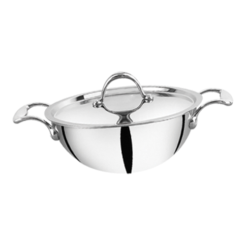 Nolta SS Triply Shallow Kadai 22cm with Lid is designed for efficient cooking with its triply stainless steel construction. The lid helps retain heat while cooking, making it perfect for frying, sautéing, and preparing a variety of dishes with ease and durability.