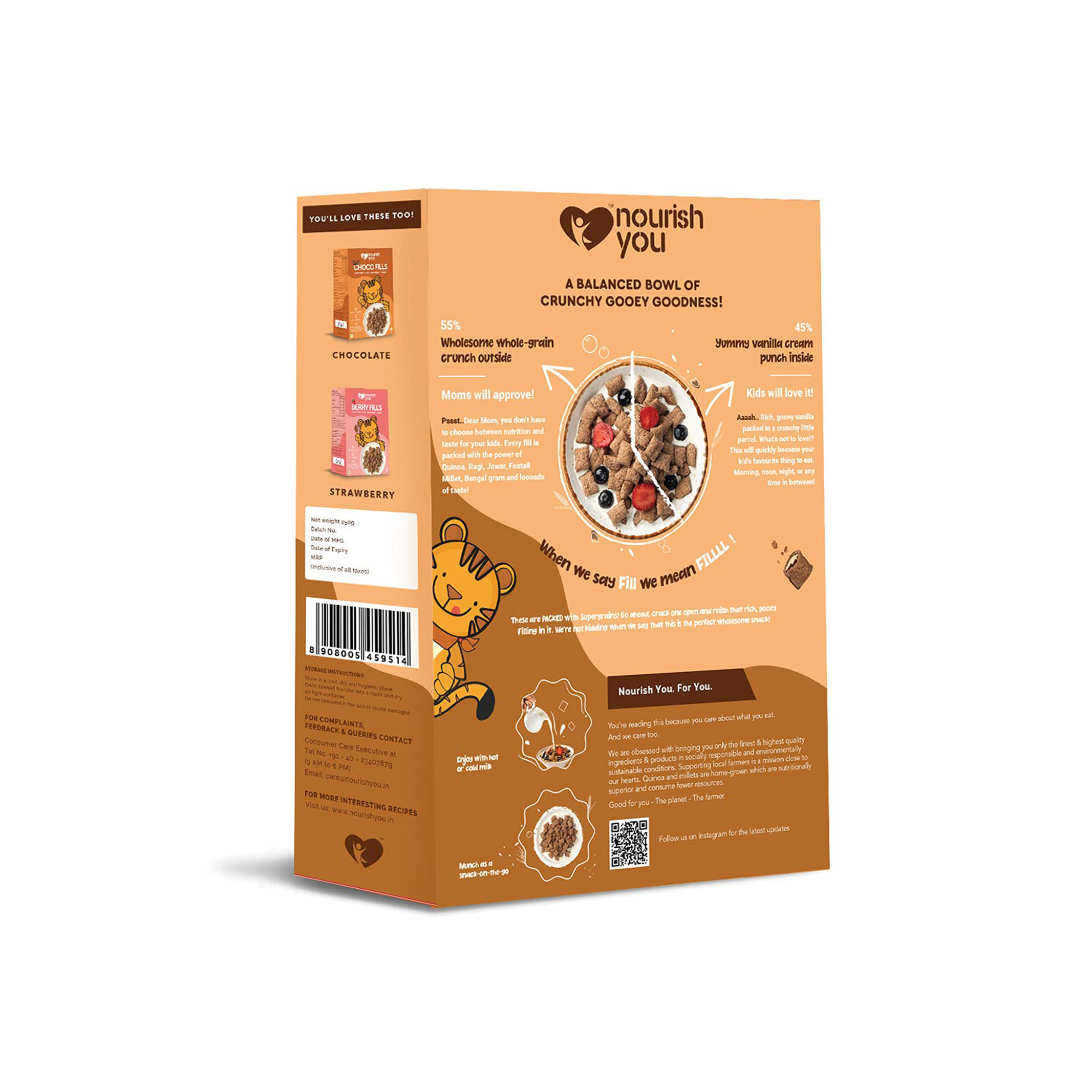 Made with quinoa and ragi: These fills are crafted with the goodness of quinoa and ragi, providing added nutrition to your snack.