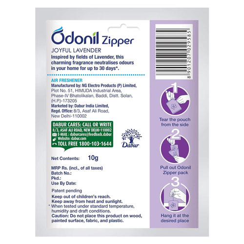 Create a soothing atmosphere with Odonil Air Freshener Bag in Lavender! This 10 GM bag releases a calming lavender fragrance that effectively neutralizes odors, making any space feel fresh and inviting. Perfect for closets, cars, or small areas, it’s an easy way to bring tranquility to your home.