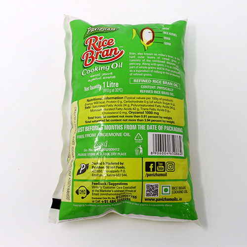 Pavizham Rice Bran Oil Pouch 1 Ltr