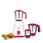 Watt: 750 W Motor Functions: Grinding, Dry Grinding, Blending, Wet Grinding Jar Types: 1.5L Multipurpose Jar, 1.0L Medium Jar, 0.4L Chutney Grinding Jar Blades: Stainless Steel Blades Body Material: ABS Plastic, Stainless Steel & Polycarbonate Overload Protection, Unbreakable Polycarbonate Lid 2 Years Warranty