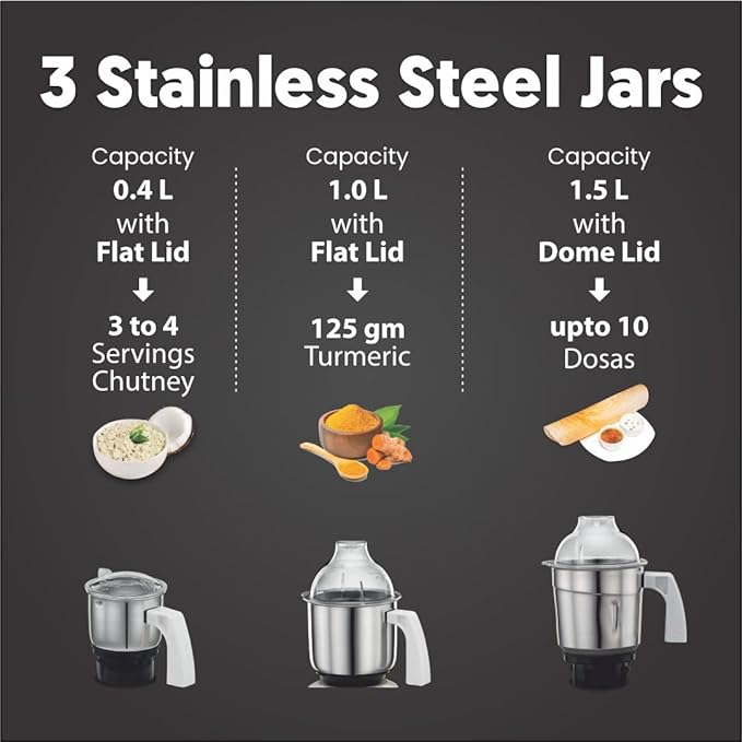 UL recognised motor, 100 precent stainless steel jars and blades, polycarbonate domes and lids Oil filled sintered bronze bushes for extended bush life High grade nylon couplers for smooth trouble free operation and sturdy ergonomically designed handles