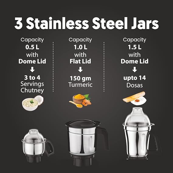 Stainless steel Jar & Blade – These Jars are made using high quality stainless steel & high precision for performance. They also go through water load test to ensure stability & endurance test for tblade (10 hrs). Strong durable ABS body to withstand heavy use Super Extractor for complete extraction of Juices, coconut milk & tamarinf essence.