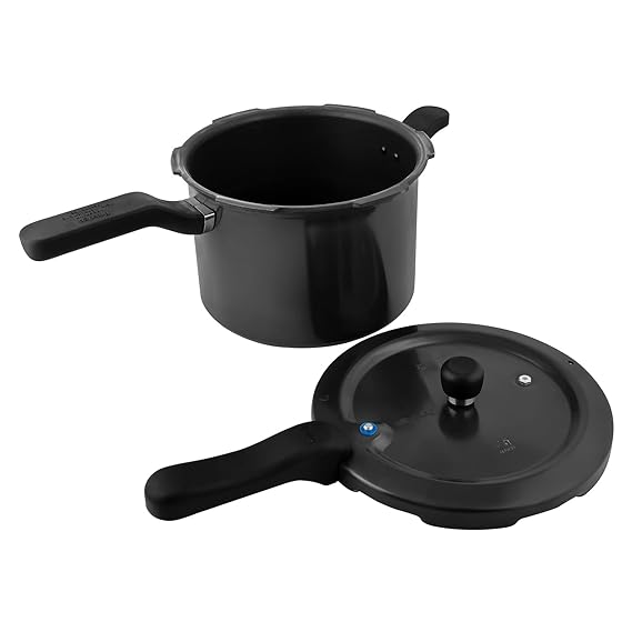 Unique Deep Lid which Controls Spillage, Mini Metallic Safety Plug Durable Handles, Anti Bulge Induction Base Controlled Gasket Release System, Gas and Induction compatible, Hard Anodized Body