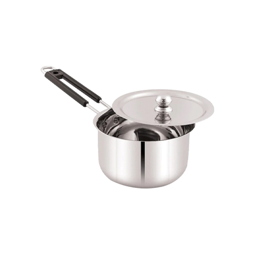 Rinku SS DTS Saucepan 2 is a durable, stainless steel saucepan designed for efficient cooking. Its even heat distribution ensures perfect cooking, while the sturdy handle offers a secure grip. Ideal for everyday use in preparing soups, curries, and more.