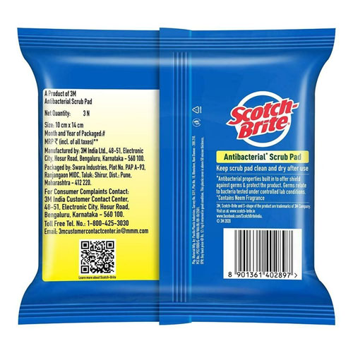 Unique scrub pad fortified with anti-bacterial property that prevents bacteria from growing on the pad