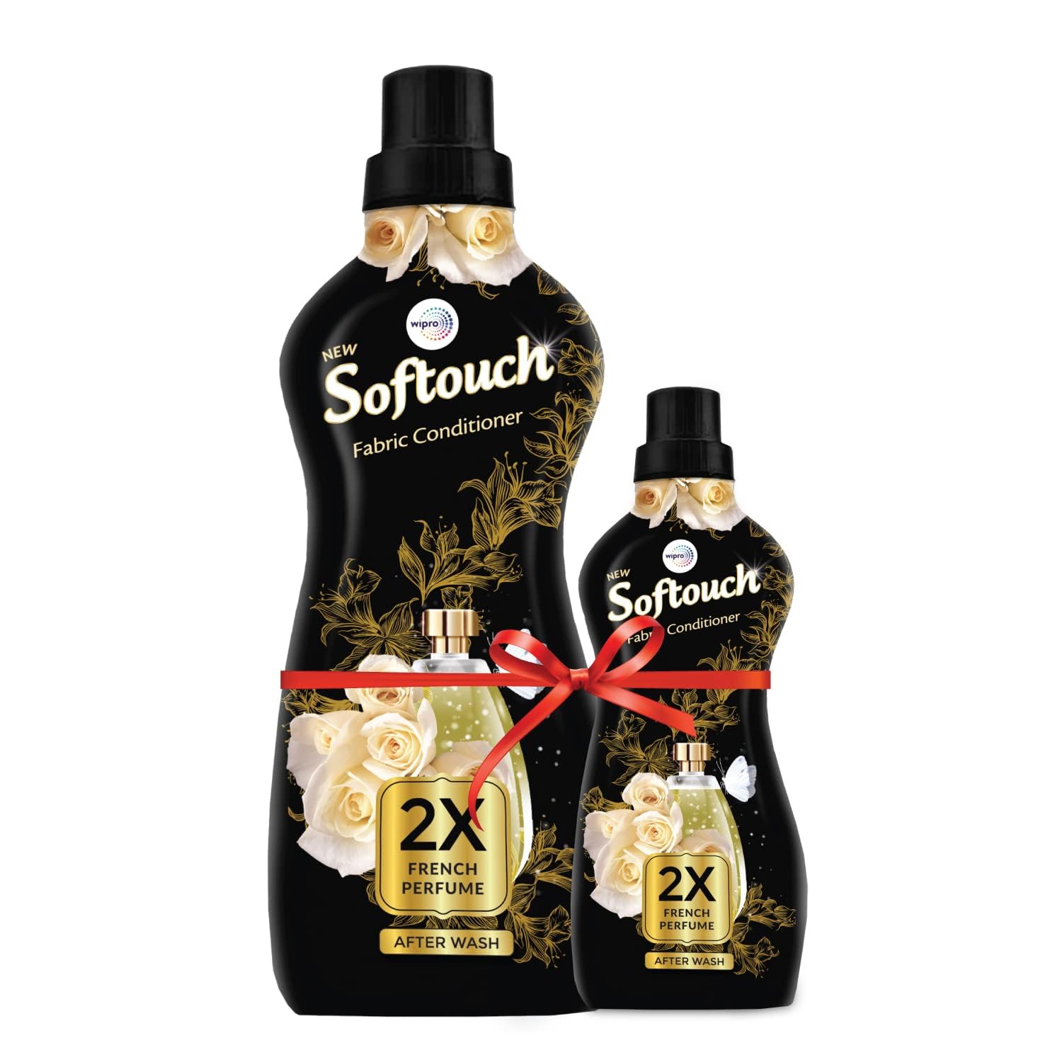 Indulge your laundry with Softouch 2X French Perfume Fabric Conditioner! This 800+200 ML combo leaves your clothes feeling soft, fresh, and luxuriously fragrant. Its concentrated formula enhances fabric care while reducing static, making ironing easier. Experience long-lasting freshness—order now for quick delivery
