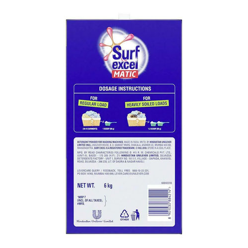 Surf Excel matic top load laundry detergent has an advanced technology that gives you hand wash like clean in machines itself