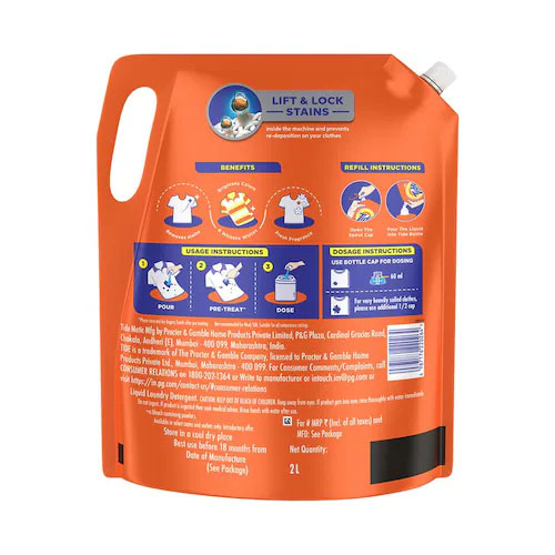 New Lift and Lock Technology in Tide Matic Liquids lifts the tough stains easily, locks them inside the machine and does not let the stains redeposit on to the clothes.