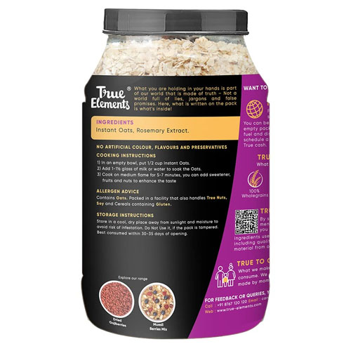 Enjoy your True Elements Cereals Oats for your breakfast. True Elements has always stayed true to those who love enjoying the food in its very own natural form made out of natural ingredients