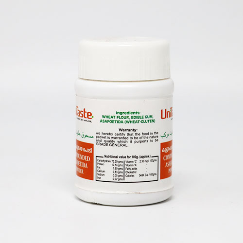 Unitaste Asafoetida Powder adds a rich, aromatic flavor to your dishes. A key ingredient in Indian cooking, it enhances curries, dals, and pickles with its distinctive taste. Pure, potent, and easy to use for an authentic touch in every meal.