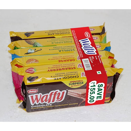 Indulge in the crunchy and creamy delight with Dukes Waffy Creamy & Crunchy Wafers Assorted Pack. This assorted pack contains lip-smacking crispy & crunchy Chocolate, Pineapple, Strawberry and Orange Flavoured Wafer Biscuits. Reward your champ or enjoy your tea breaks with this flavoured wafer biscuits.