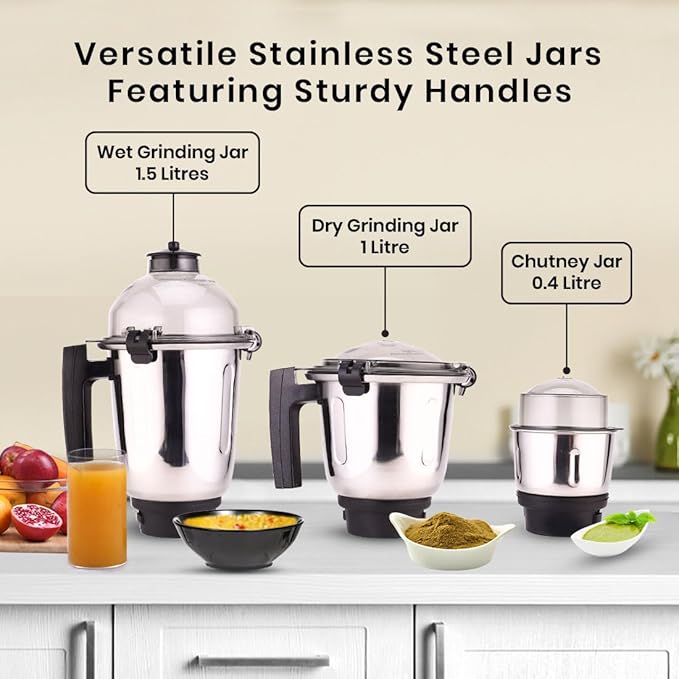 Wonderchef Mixi Regalia 3 Jar 750W is a powerful and efficient mixer grinder, equipped with a 750-watt motor and three jars, ideal for everyday blending and grinding tasks in the kitchen.